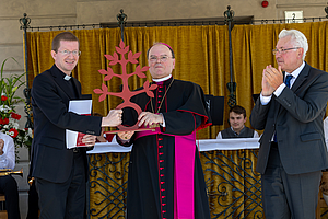 Bischof Bertram Meier würdigt das Wirken des Dominikus-Ringeisen-Werks bei der offiziellen Stabübergabe im Amt des Vorstandsvorsitzenden