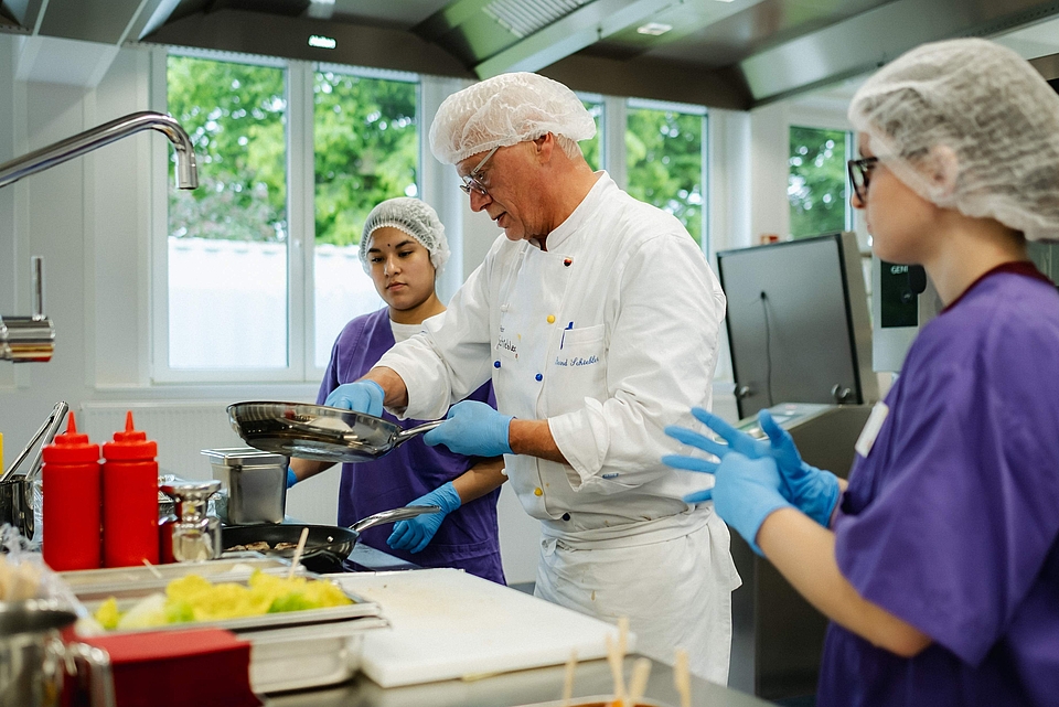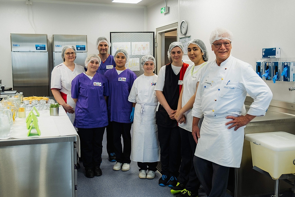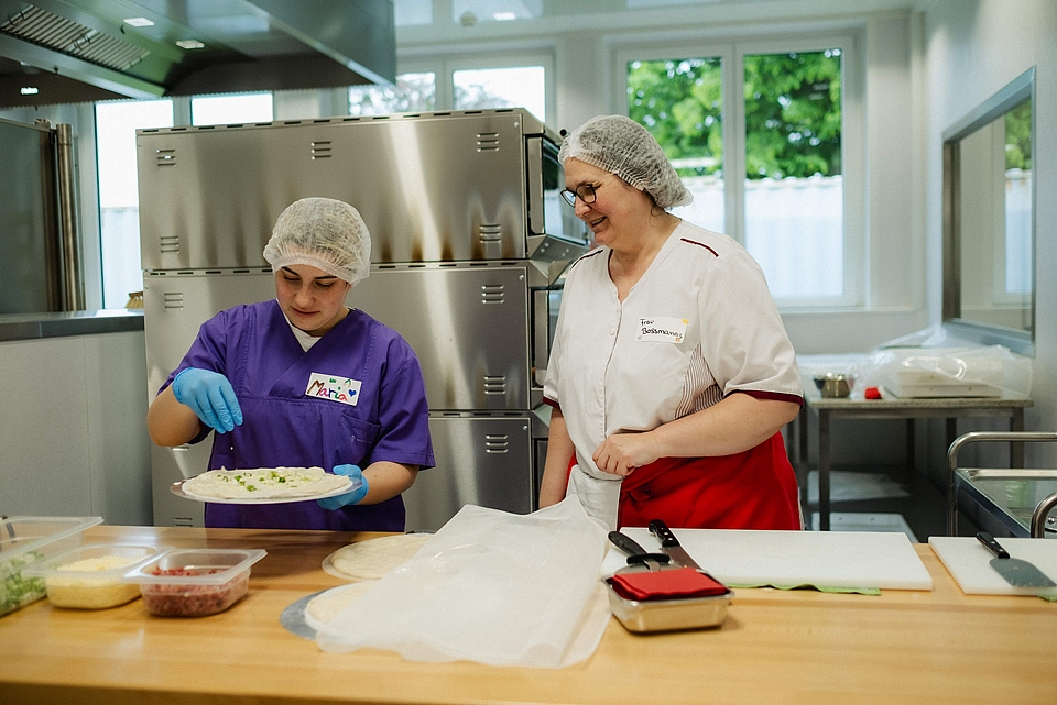 Die Lehrküche bietet optimale Möglichkeiten, um hauswirtschaftliche Kompetenzen praxisnah zu erlernen – von der Speisenzubereitung über Hygiene, Planung und Haushaltsführung bis hin zur gelingenden Teamarbeit. Das gelingt auch dadurch, dass die Jugendlichen in unmittelbarer Nähe zu einer modernen Großküche arbeiten und in die dortigen Arbeitsabläufe eingebunden sind. Mit zahlreichen Wohngruppen für Menschen mit Assistenzbedarf und der Wäscherei Ursberg stehen weitere Ausbildungsmöglichkeiten zur Verfügung. Schließlich sollen die Azubis später auch gute Chancen auf dem allgemeinen Arbeitsmarkt haben und sich dort erfolgreich einbringen können, sagt die Leiterin der Versorgungsbetriebe Ursberg, Christine Goßner. „Unsere Auszubildenden bringen ganz unterschiedliche Voraussetzungen mit. Das erfordert von den Ausbildern im Arbeitsalltag nicht nur die Weitergabe von Fachwissen, sondern auch Einfühlungsvermögen, Geduld und Flexibilität, um die Azubis ganz individuell abzuholen.“