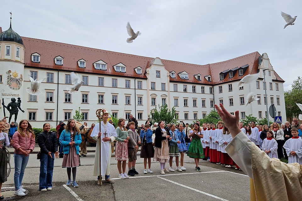 Im Anschluss an den Festzug ließen Schülerinnen und Schüler vor der Kapelle St. Florian Friedenstauben in den Himmel steigen. Norbert sei zu Lebzeiten darum bemüht gewesen, Frieden zwischen Menschen und Parteien zu stiften, erklärte Pater Christian. „Auch wir haben den Wunsch nach Frieden und senden deshalb dieses Zeichen in den Himmel.“